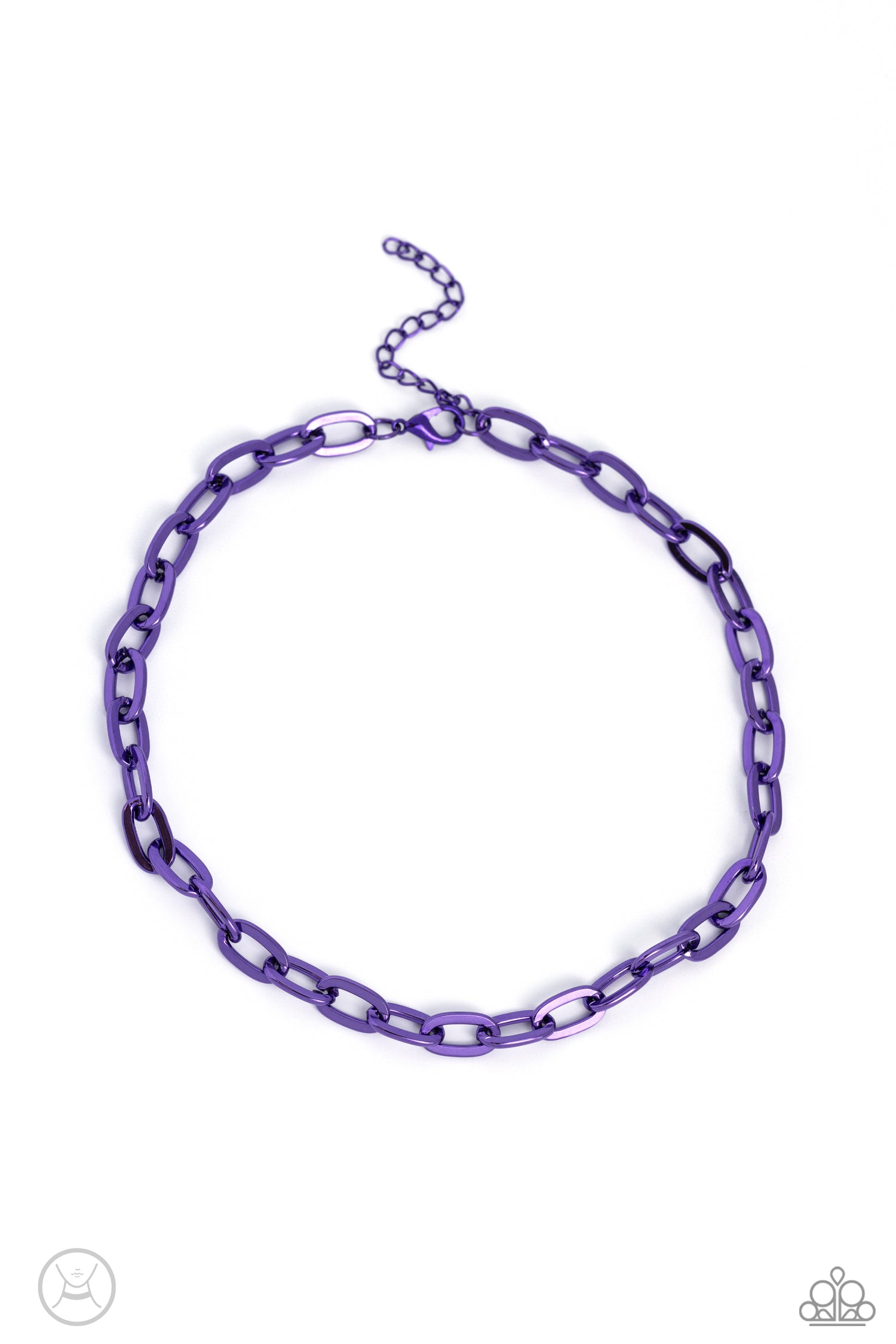 Oversized electric purple links connect below the collar for a bold urban look. Features an adjustable clasp closure.
